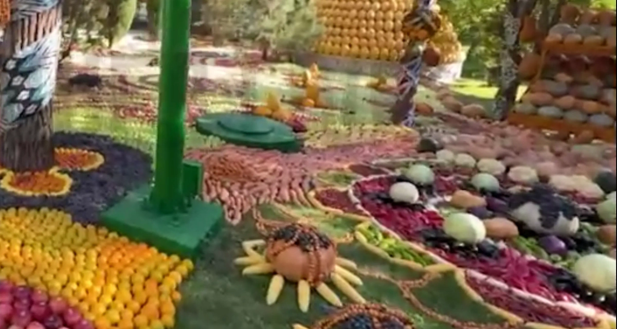 Временную резиденцию президента России Владимира Путина в Таджикистане украсили композициями из фруктов. Целые горы яблок, тыкв, дынь, мандаринов и других даров природы стали необычным декором резиденции. Кадрами поделился в своём телеграм-канале корреспондент Кремлёвского пула Александр Юнашев.