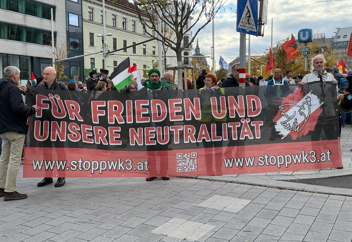 «Нынешний курс ЕС на войну влечёт за собой огромные расходы на вооружение, которые пойдут в ущерб укреплению мира, социальной безопасности и процветанию. Правительство Австрии стремится в военный альянс НАТО. Таким образом правительство действует вопреки закреплённому конституцией нейтралитету и стремлению австрийцев к миру», — сказали инициаторы демонстрации.