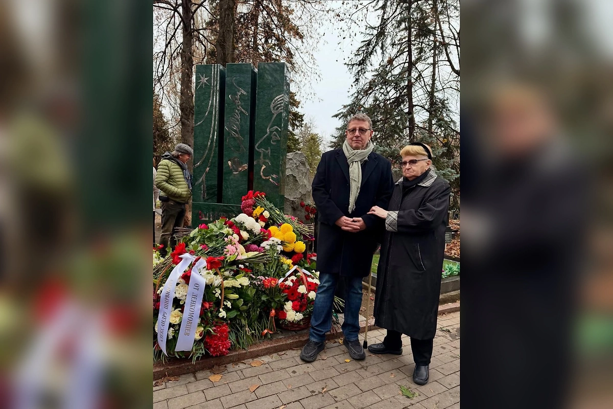 Вдова и сын пришли на открытие памятника Александру Ширвиндту на Новодевичьем кладбище