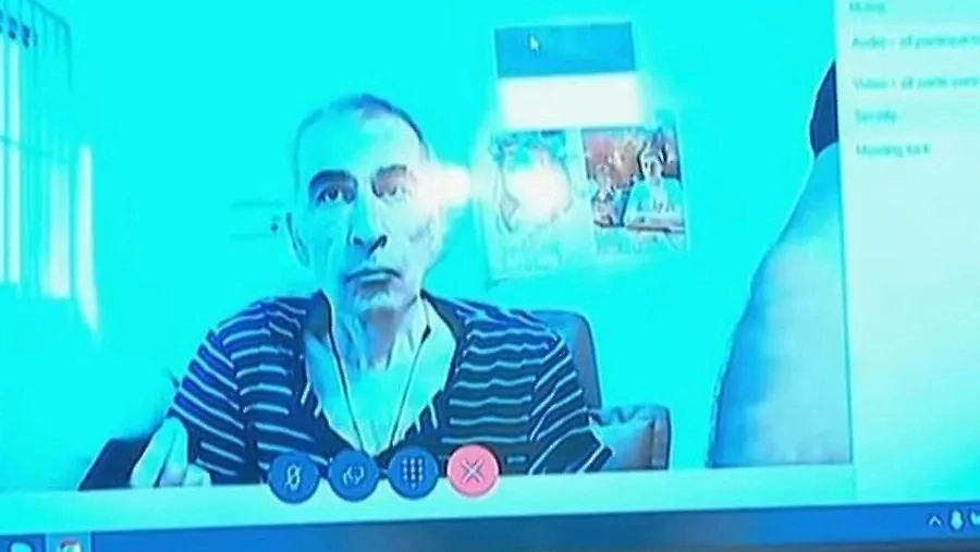 Михаил Саакашвили подключился к судебному процессу из клиники. Обложка © Mtavari