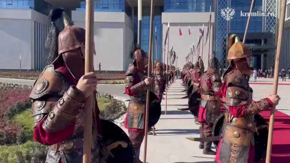 Красная дорожка и воины в доспехах: Путина в Киргизии встретили необычным сюрпризом