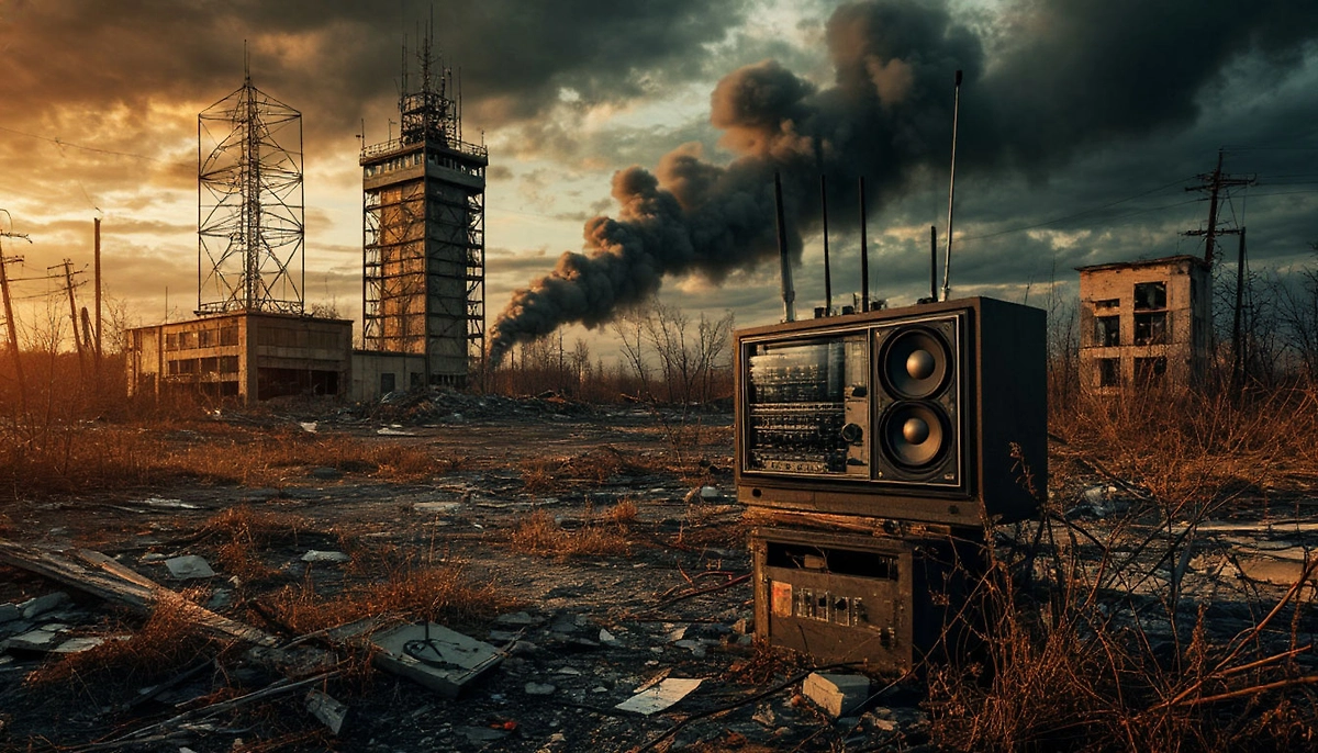 До этого радио Судного дня временно прекращала трансляцию из-за потери сигнала. Перебои в подаче электричества возникли в результате атаки беспилотного летательного аппарата на энергетическую подстанцию. Точное местонахождение питающей радиостанцию подстанции остаётся неизвестным.