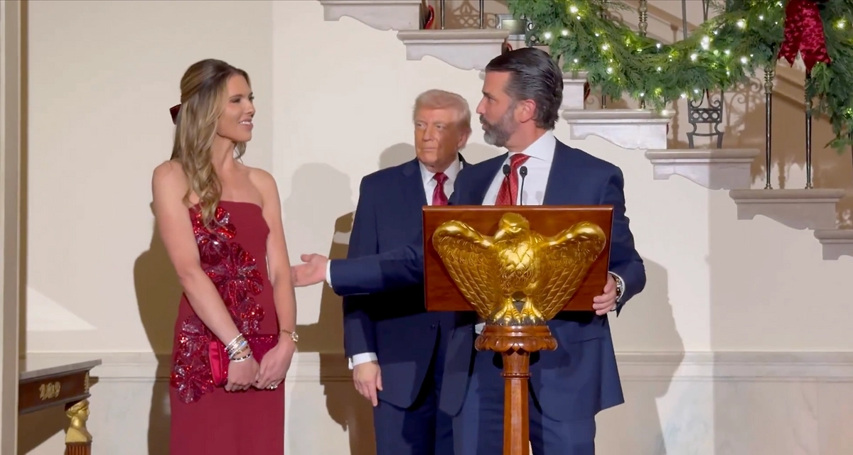 Сын президента США Дональд Трамп-Младший объявил о помолвке с моделью Беттиной Андерсон. Он поделился радостной новостью в Белом доме, фрагмент публикует журналистка Лора Лумер в соцсети X.