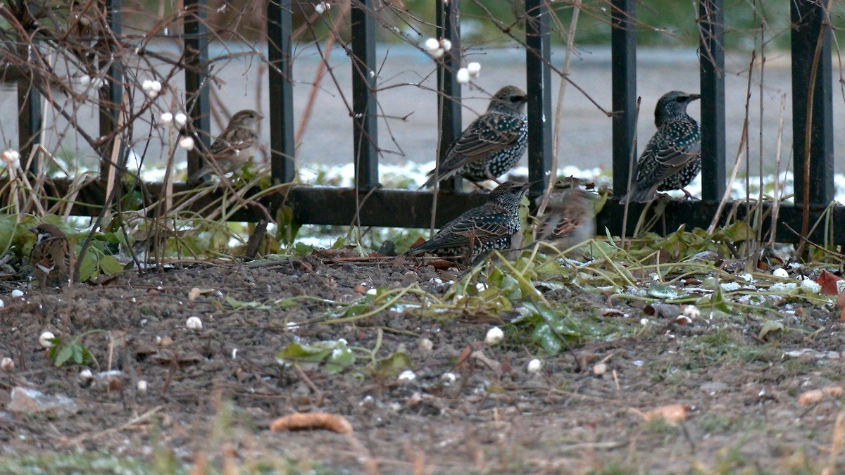«Скворцы — как и положено сейчас — в своём зимнем наряде. Их чёрное оперение усыпано белыми пестринами. К началу весны белые кончики перьев обносятся и птицы предстанут перед нами в своих щёгольских чёрных фраках с зелёным, синим и фиолетовым отливом», — сказал Глазков.