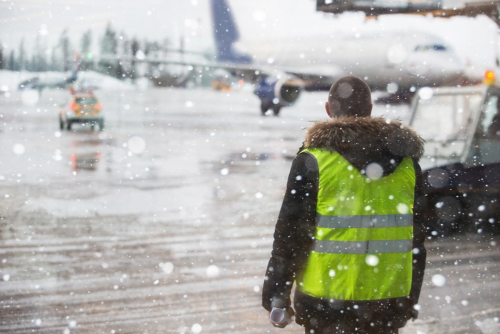 Сотрудники аэропорта с ночи ведут непрерывную борьбу со стихией, расчищая ВПП от снежных заносов.