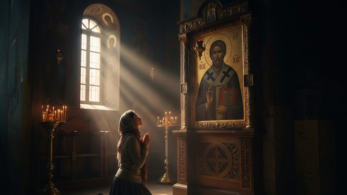Молитва Николаю Чудотворцу о любви и мире в отношениях. Фото © Nano Banana AI