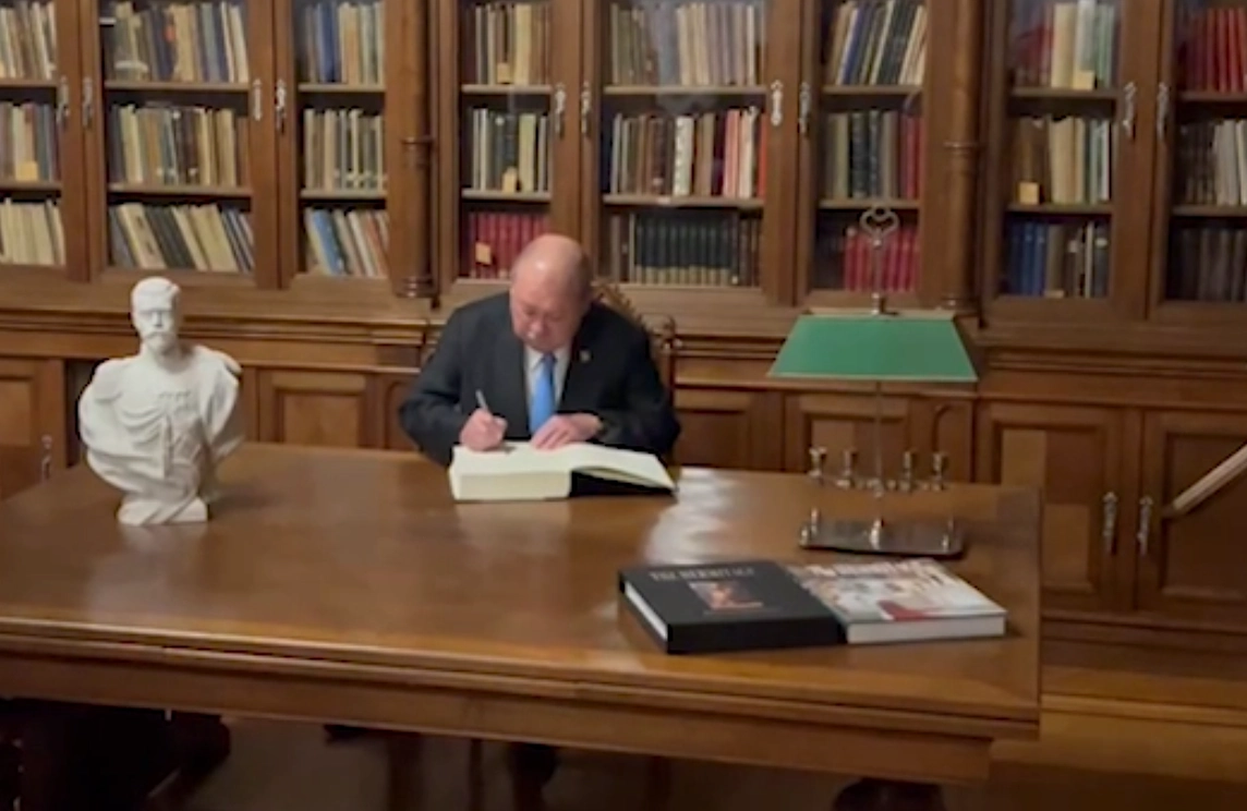 В рамках своего визита в Санкт-Петербург сутан Малайзии Ибрагим посетил Государственный Эрмитаж. Церемониальным завершением экскурсии стала запись короля в книге почётных гостей музея.