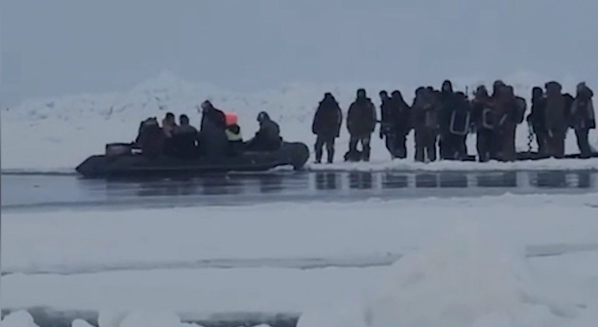 У берегов Сахалина с отколовшейся льдины эвакуировали десятки рыбаков