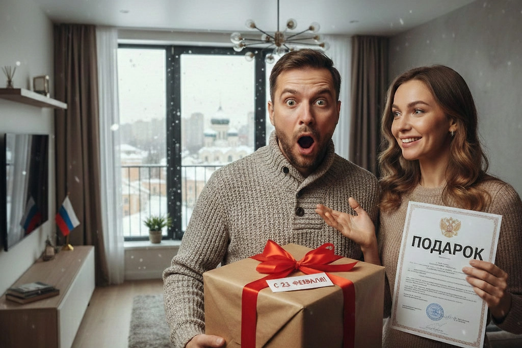 Что подарить на 23 Февраля 2026: Топ-25 идей подарков под любой бюджет. Обложка © Nano Banan AI