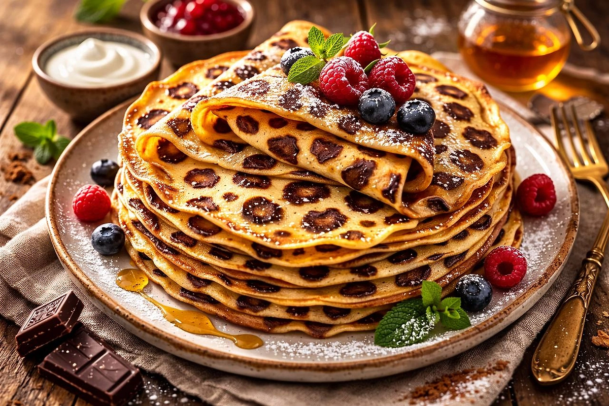 Масленичная неделя — это время, когда кажется, что на столе должно быть всё: и классика, и необычности. Леопардовые блины буквально покорили фуд-блогеров и любителей красиво приготовить простое блюдо. Ведь они сочетают в себе традицию и фантазию. Соцсети уже полны фотографий таких блинов, и многие отмечают, что в этом году именно они стали главным трендом Масленицы 2026.