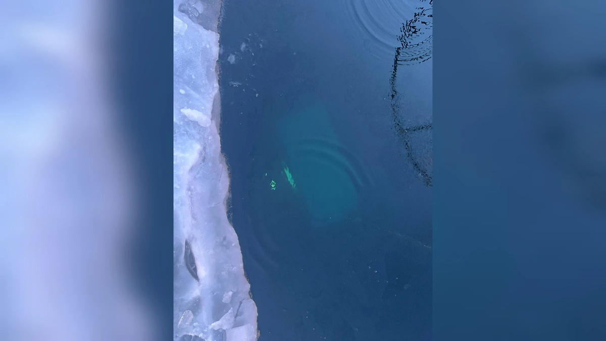 Министерство внутренних дел опубликовало первое фото утонувшего в Байкале автомобиля с китайскими туристами. Машина наехала на трещину и практически мгновенно ушла под воду.