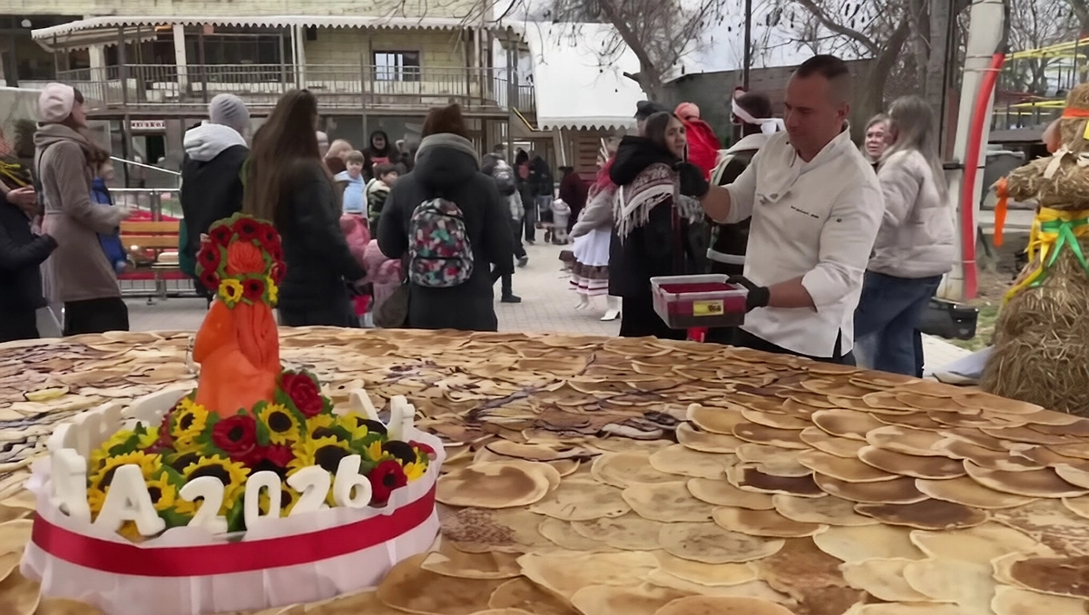 «Для приготовления этих блинов мы использовали классический рецепт. На них ушло примерно 20 литров молока, мешок муки и куча времени», — заявил шеф-повар Иван Нещеретный.