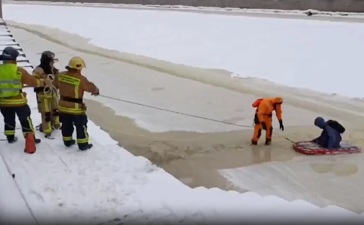 Спасателям пришлось вызволять мальчика из хрупкой ловушки на льду Фонтанки