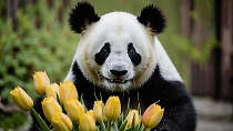 Панде Катюше подарили цветы на 8 Марта