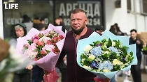 Панорама 360°: Life.ru в деталях показывает, как мужчины штурмовали цветочный рынок в Москве перед 8 Марта