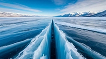 На льду Байкала из-за резкого перепада температур образовалась огромная трещина