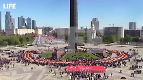 В Москве развернули огромную георгиевскую ленту длиной 300 метров
