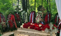 Куча венков и крест: Life.ru публикует фото утопающей в цветах могилы Старовойта
