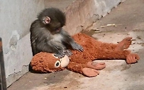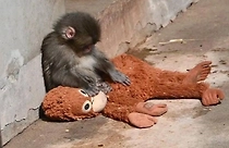 Один против всех: Маленькому Панчу пришлось спасаться от агрессивной макаки в объятиях плюшевой мамы